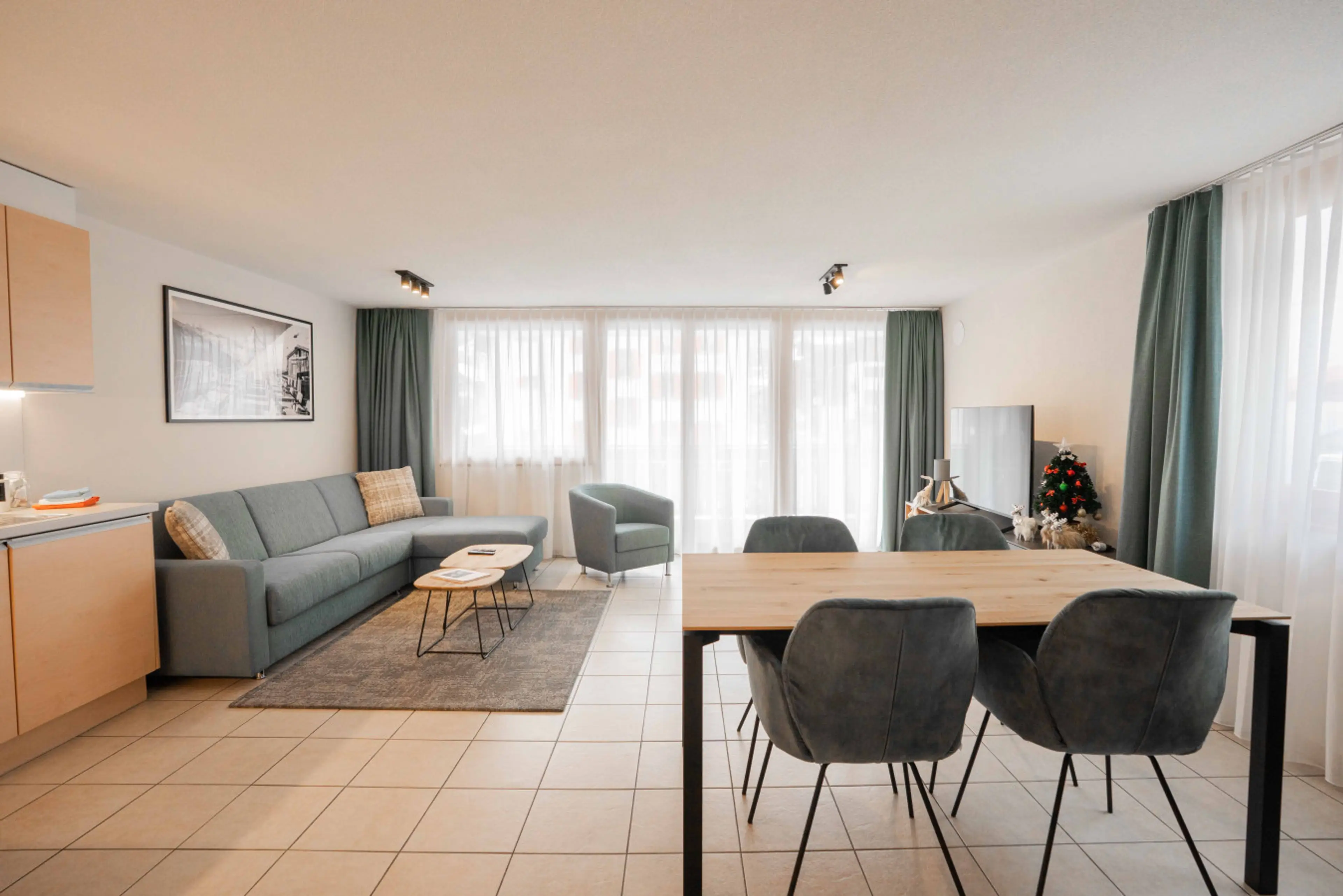Zentrales Apartment in Zermatt - Direkt neben Bahnhof, Sunnegga- und Gornergratbahn, Einkaufsmöglichkeiten, Skiverleih und Bäckerei im Haus. 75 m² Wohnfläche mit grossem, sonnigem Balkon, offenem Wohn-/Essbereich, voll ausgestatteter Küche und gemütlicher Einrichtung. 1 Doppelschlafzimmer, 1 Einzel...